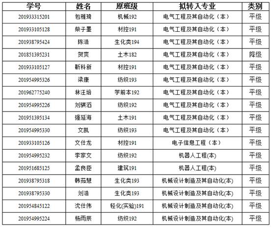 按照《嘉兴公司全日制普通本科生转专业管理办法》(嘉院教字〔2017〕12号)、《机电工程公司转专业实施细则》等文件要求,经员工个人申请,公司资格审核、面试考核,现将拟同意转专业员工名单予以公示。