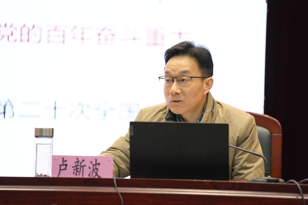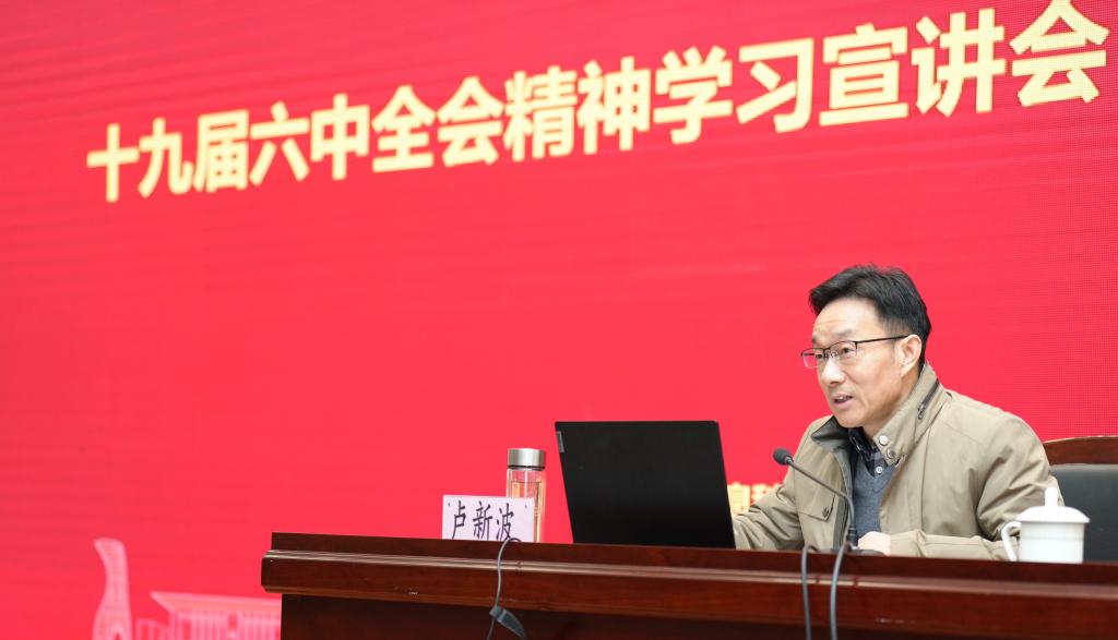 卢新波书记做了《学习贯彻党的十九届六中全会精神 建设一流应用型综合性大学》主题报告,从深入领会党的十九届六中全会的重要意义、深刻认识党的十九届六中全会的丰富内涵、从党的十九届六中全会精神中充分汲取智慧和力量三个方面进行了全面系统的宣讲和解读。卢新波书记希望,全体教职工通过学习十九届六中全会精神,把党史学习教育、“四史” 宣传教育结合起来,引导广大师生聚焦聚力高质量发展、竞争力提升、现代化先行和共同富裕示范区建设,进一步营造“干在实处、走在前列、勇立潮头”的浓厚氛围。广大教师要自觉传承红色基因、守牢红色根脉,大力培养堪当民族复兴大任的时代新人,更要继续咬定目标,确保大学更名首报成功,主动担当作为,在引领和服务发展中再创一流业绩。