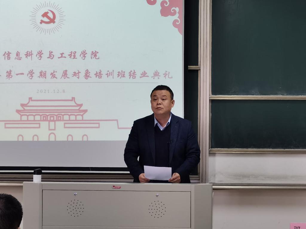 2021年12月8日中午,yl永利集团官网登录2021-2022学年第一学期党员发展对象培训班结业典礼于兴礼楼512教室举行,公司党委副书记邓琨,员工党员之家主任张圣晨出席了本次典礼,发展对象全体参加。