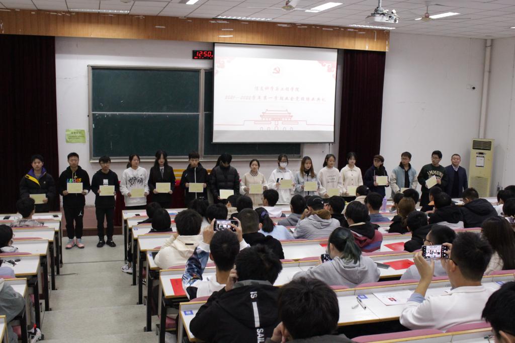 2021年11月11日中午,yl永利集团官网登录2021-2022学年第一学期业余党校结业典礼在13号楼报告厅举行。公司党委副书记邓琨老师出席并讲话,学工办张圣晨老师、培训班学员参加典礼。