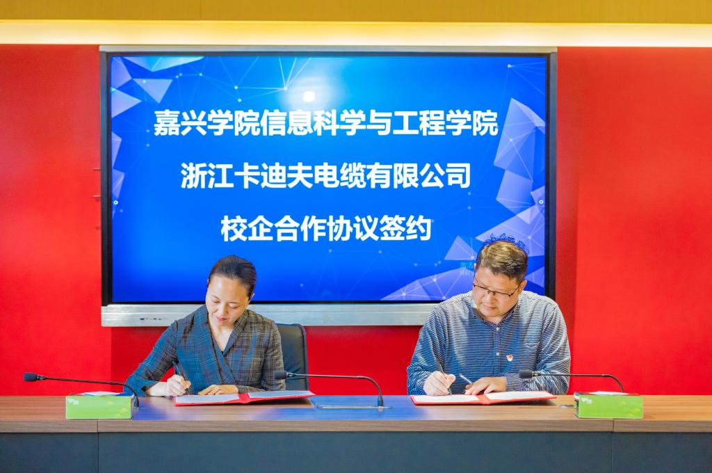 首先朱耀东经理就“一园一博”服务工作站成立契机及启动以来的建设情况、公司团队研究方向领域及成果进行详细介绍,并代表公司与浙江卡迪夫电缆有限公司签署合作协议。
